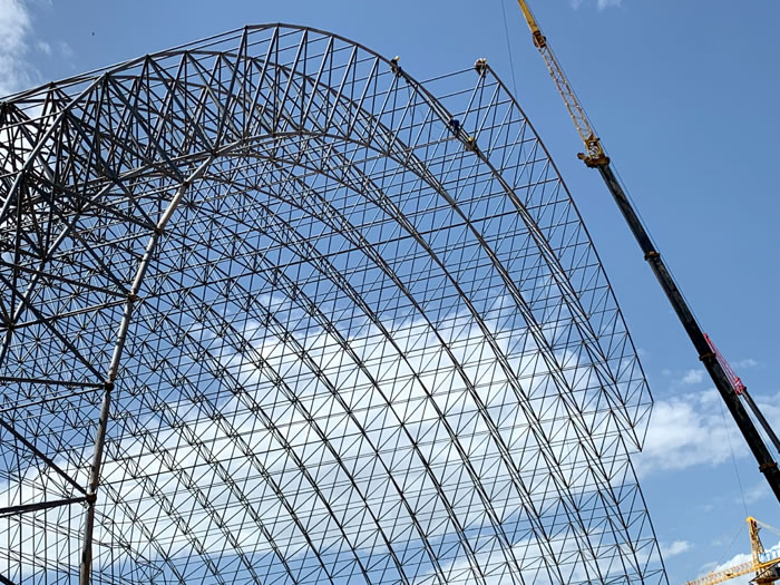 (2)网架加工前应对现场尺寸进行复测,确认无误后方可进行加工、安装;网架制作、运输、安装应遵守《空间网格结构技术规程》JGJ7-2010、《钢网架永济螺栓球节点》JG/T 10-2009、《钢网架永济螺栓球节点用高强度螺栓》 GB/T 16939-2016、《永济钢结构永济工程永济施工规范》 GB50755-2012、《永济钢结构永济工程施工质量验收标准》 GB50205-2020。